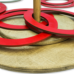 Игроки на одинаковом расстоянии от кольцебросов одновременно начинают забрасывать кольца своего цвета на стойки. Побеждает тот, кто закинет больше колец за отведенное время.